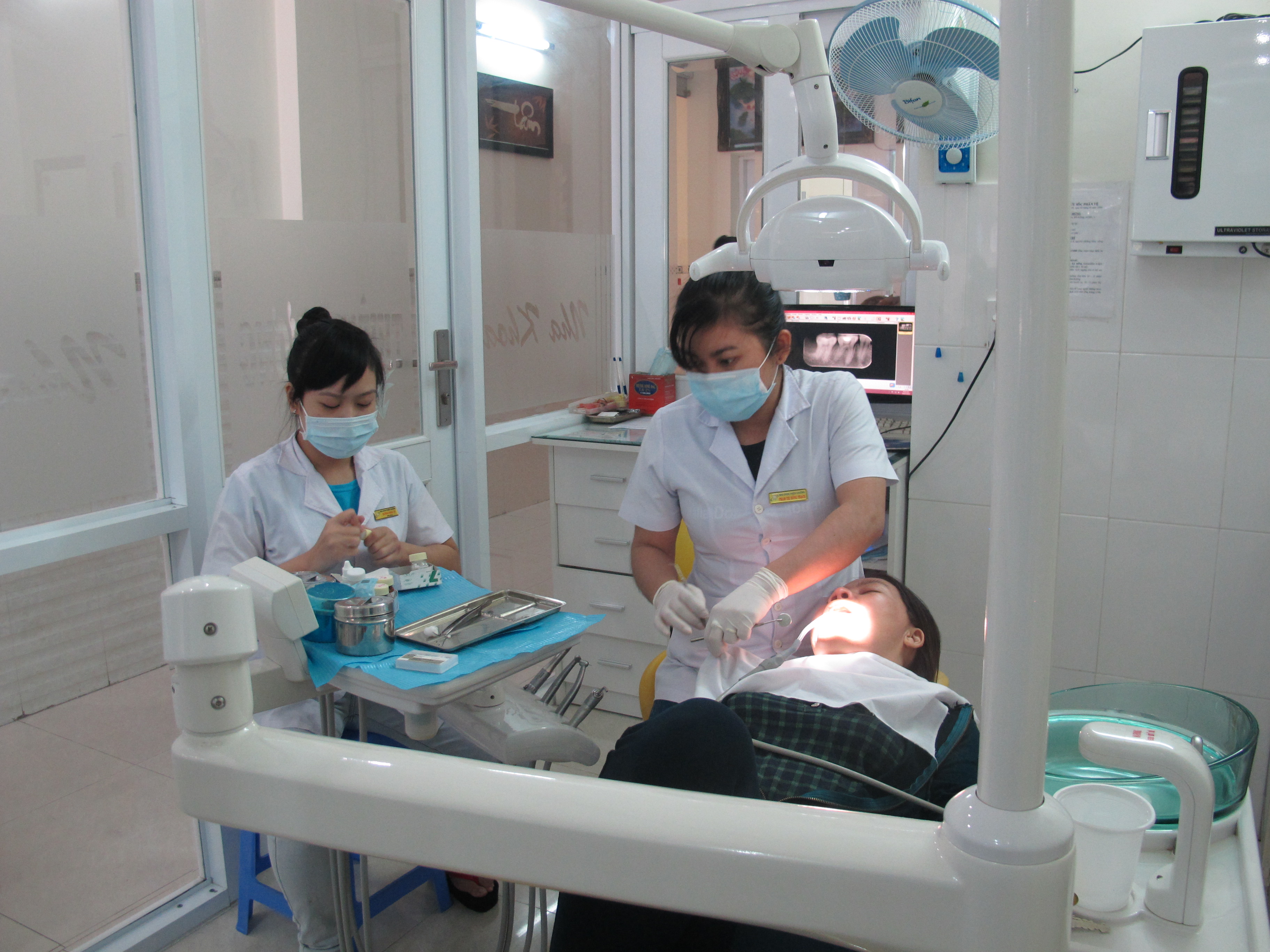 Dụng cụ hấp xong được phân ra các phòng điều trị và bảo quản bằng tủ tia cực tím. Chỉ được lấy ra khi bệnh nhân đã vào ghế điều trị.